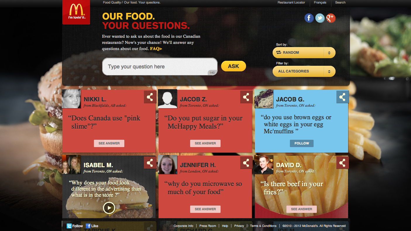 Take McDonald’s Canada for example, they allow their customers to ask their questions and curate them in a list. By using social media to source suggestions, they’re able to garner responses from their audience.
