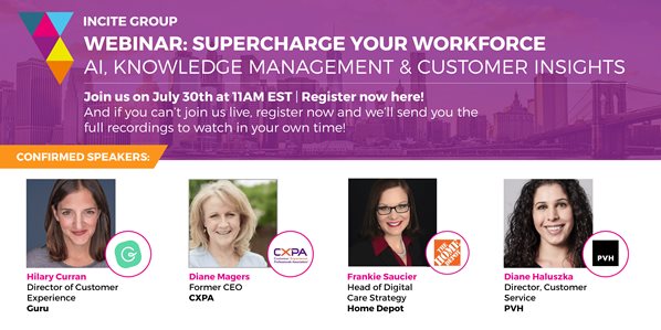 To find out how, join Incite Group’s webinar, “Supercharge Your Workforce” (July 30, 11:00AM EST). Hear from Home Depot, Guru, PVH, Microsoft & CXPA on how they empower their agents with the tools and strategies to deliver the ultimate CX.